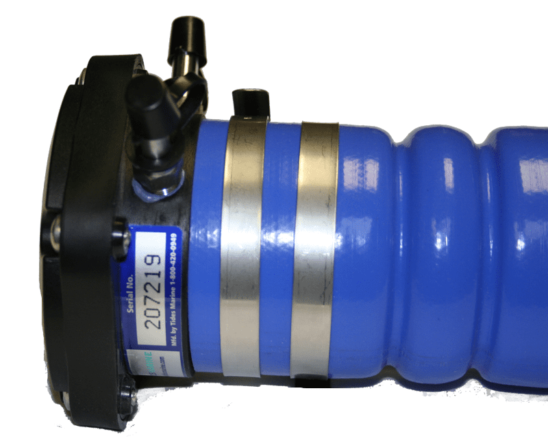 The serial number on the SureSeal Shaft Seal will usually end up on the bottom when installed in the vessel. It is located on the riser portion of the SureSeal body in front of the hose.