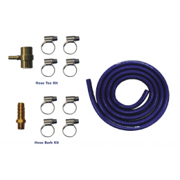 Hose barb kits contain a straight brass hose barb which can be threaded into any number of pick-up points in the water pump, gear cooler or heat exchanger. These hose barbs are sized to match the corresponding fitting on each SureSeal. The kit includes 8′ of marine grade silicone fuel hose and all necessary hose clamps.