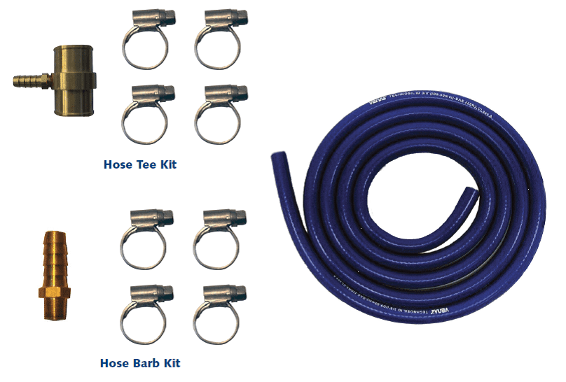 Hose Tee Kits are used to tap into flexible cooling hoses and Hose Tee Kits are used to tap into fixed points in the raw water cooling system. See diagram on the Before Ordering Page.