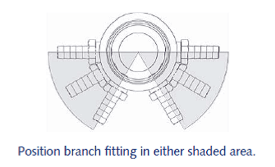 The water pick-up fitting should be installed in the “pressure side” of the vented loop “T”. This vented loop should be as far above the waterline as is practical (a minimum distance of 12” is required).