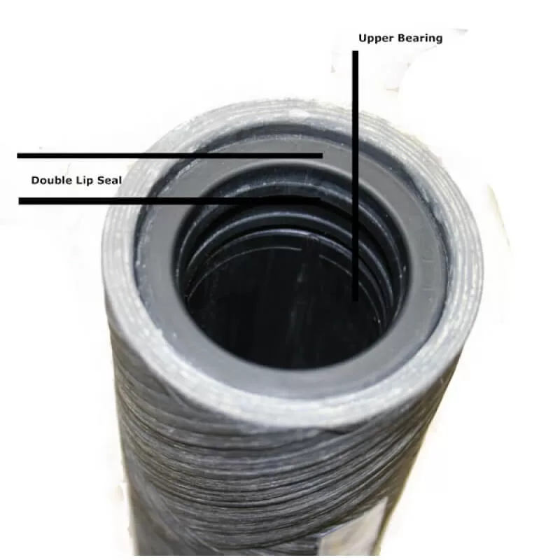 The system comes fully assembled with UHMW upper and lower bearings installed in an FRP tube with two lip seal at the top. A UHMW thrust washer is included.