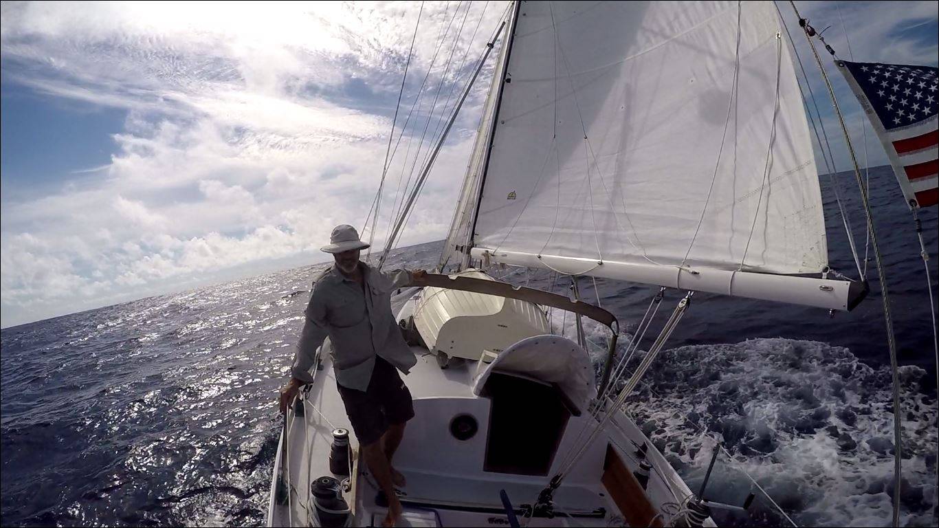 In December of 2015 we double-handed the Far Reach, via the offshore route from Cape Lookout NC to the British Virgin Islands. It was a demanding 1600 nm upwind passage with the last five days in 30-35 knot winds and 10-14 seas. I spent five glorious months sailing in the West Indies with my family. In Late May I single-handed the Far Reach 1340 nm back to NC from Sint Maarten. The passage home was all downwind and was just a wonderful trip. Please see the attached photo.